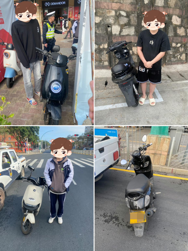 7名少年结伴骑行四辆摩电